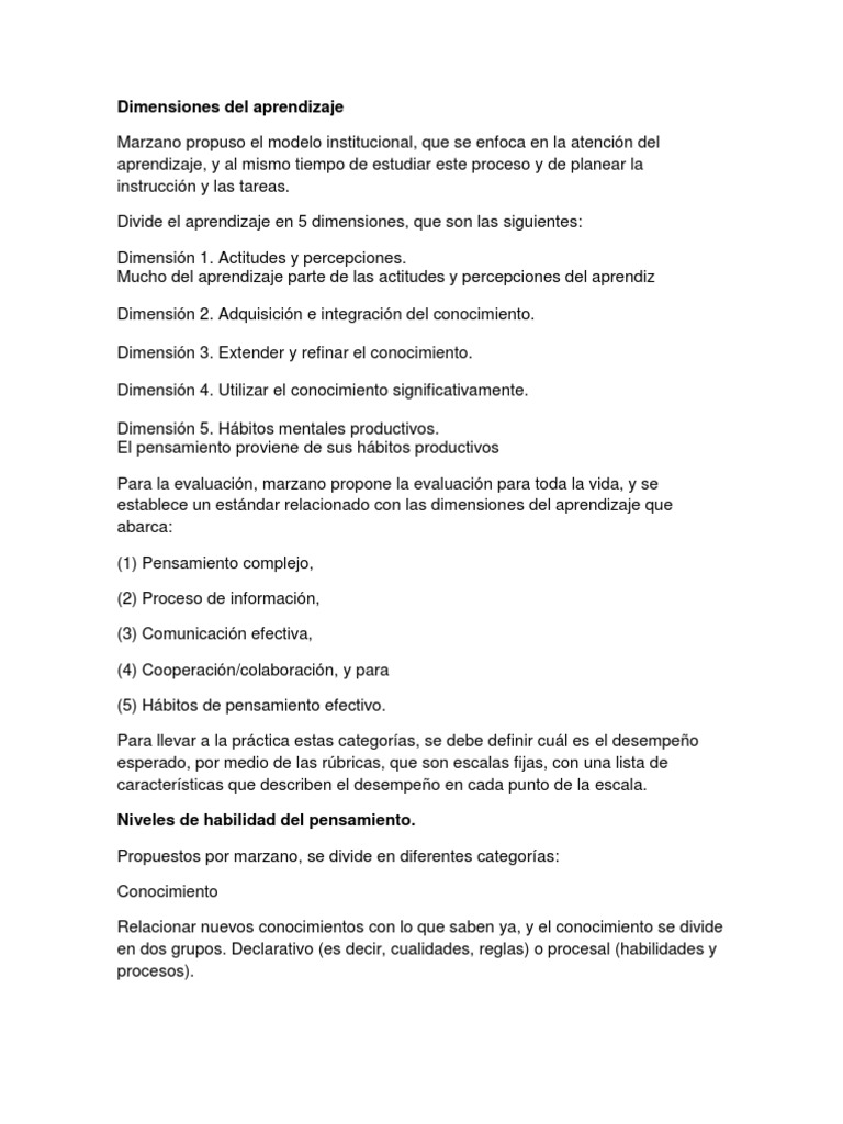 Escrito Dimensiones Del Aprendizaje Pdf Universidad Del Este Escuela De Educaci U00f3n Cedemi Dimensiones De Aprendizaje De Robert J Marzano Uso Course Hero