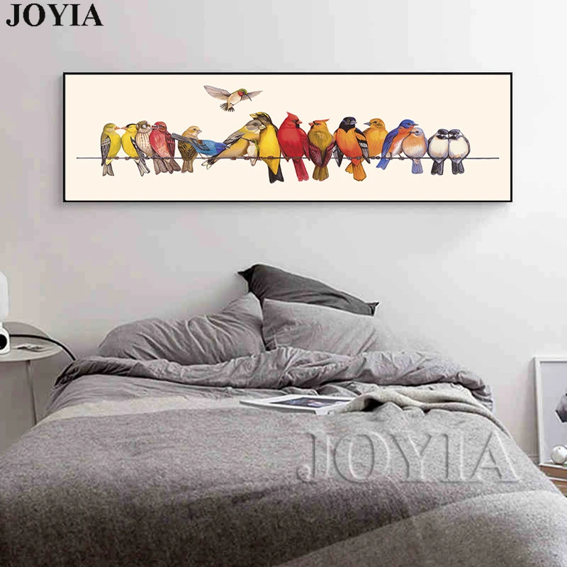 Moderne salon mur décor oiseau peinture oiseaux colorés sur le fil imprime photo pour chambre chevet toile Art pas de cadre | AliExpress